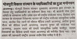 आजमगढ़ :-भोजपुरी विकास संस्थान मुख्यालय आजमगढ़ द्वारा संस्थान के विस्तार खातिर पदाधिकारी गण क मनोनयन