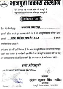 Blog श्री जगदम्बा उपाध्याय को “प्रदेश मिडिया प्रभारी ऊ.प्र.” के रूप में मनोनयन किया गया-मुख्यालय भोजपुरी विकास संस्थान admin श्री जगदम्बा उपाध्याय को “प्रदेश मिडिया प्रभारी ऊ.प्र.” के रूप में मनोनयन किया गया-मुख्यालय भोजपुरी विकास संस्थान