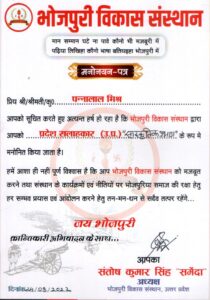 Blog श्री पन्नालाल मिश्र को “प्रदेश सलाहकार सांस्कृतिक प्रभाग ऊ.प्र”. के रूप में मनोनयन किया गया-मुख्यालय भोजपुरी विकास संस्थान admin